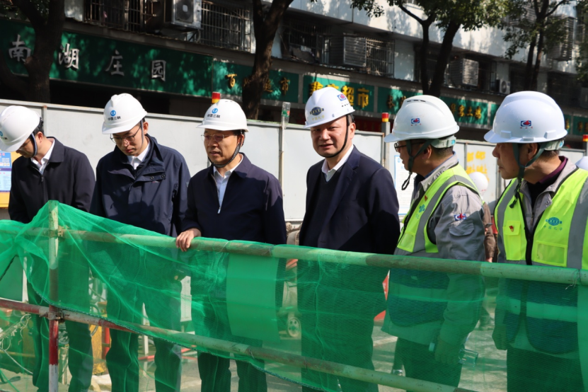 王殿常一行先后來到了項(xiàng)目部西瓜山濕地公園和求索西路雨污分流改造工程調(diào)研。彼時(shí)的西瓜山濕地公園湖水碧波蕩漾,岸坡綠草青青,改造后的西瓜山項(xiàng)目污澇同治、成效顯著,大家實(shí)地見證了從黑臭水體到“城市綠肺”的華麗轉(zhuǎn)身,開園后將成為九華山片區(qū)周邊居民打卡休閑的好去處。另一處的求索西路雨污分流改造工程采用頂管施工技術(shù),作業(yè)人員正在進(jìn)行倒掛壁和頂管施工,通過新建污水管網(wǎng)打通“主動(dòng)脈”。該處為南津港片區(qū)污水主干管,收集南津港周邊污水,提高COD濃度,減輕南津港污水處理廠壓力,達(dá)到提質(zhì)增效的目的。