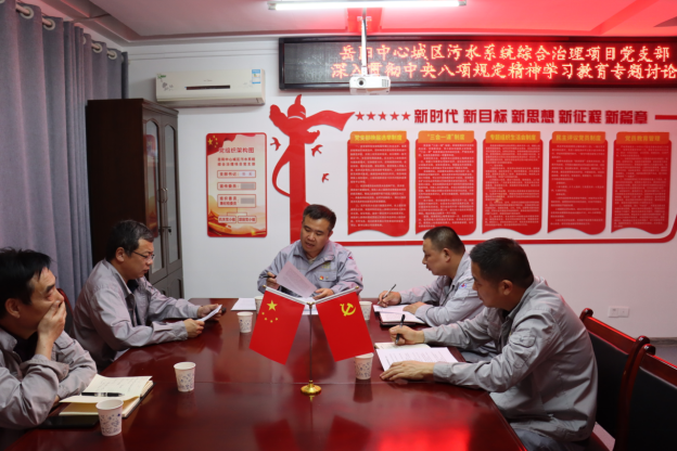 4月22日,岳陽中心城區(qū)污水治理項目黨支部召開深入貫徹中央八項規(guī)定精神學習教育專題學習研討會。會議圍繞《習近平關(guān)于加強黨的作風建設(shè)論述摘編》和中央八項規(guī)定及其實施細則精神組織學習并開展研討,全面加強項目團隊作風建設(shè)。會議強調(diào),要以學習教育為重要契機,強化責任擔當意識,嚴守各項規(guī)章制度,確保項目建設(shè)依法依規(guī)推進,堅決杜絕違規(guī)行為,全力營造風清氣正的工作環(huán)境,以作風建設(shè)新成效推動項目建設(shè)再上新臺階,為公司高質(zhì)量發(fā)展做出更大貢獻。