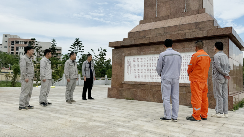 當天上午,黨支部全體成員前往湛江烈士革命紀念碑開展紅色教育。在莊嚴肅穆的氛圍中,大家整齊列隊,向革命先烈敬獻花籃并默哀致敬。全體黨員重溫入黨誓詞,在鏗鏘誓言中汲取革命先烈的清廉力量,將“守初心、擔使命”的信念轉化為項目建設的責任擔當。