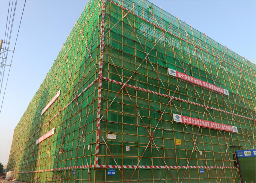 該項(xiàng)目總建筑面積1.67萬平方米,包括1棟多層廠房、1棟單層門衛(wèi)輔助用房。其中廠房標(biāo)準(zhǔn)層7.8米,地下室消防水池為深基坑,東側(cè)緊鄰高壓輸電線,主體結(jié)構(gòu)與室外交叉作業(yè),施工場地狹小。自5月12日項(xiàng)目開工以來,面對梅雨季節(jié)和高溫酷暑,項(xiàng)目部以“開工即決戰(zhàn)”姿態(tài),奮力組織開展突擊大干,施工人員日夜奮戰(zhàn)、頑強(qiáng)拼搏,僅用90天就順利完成項(xiàng)目封頂。